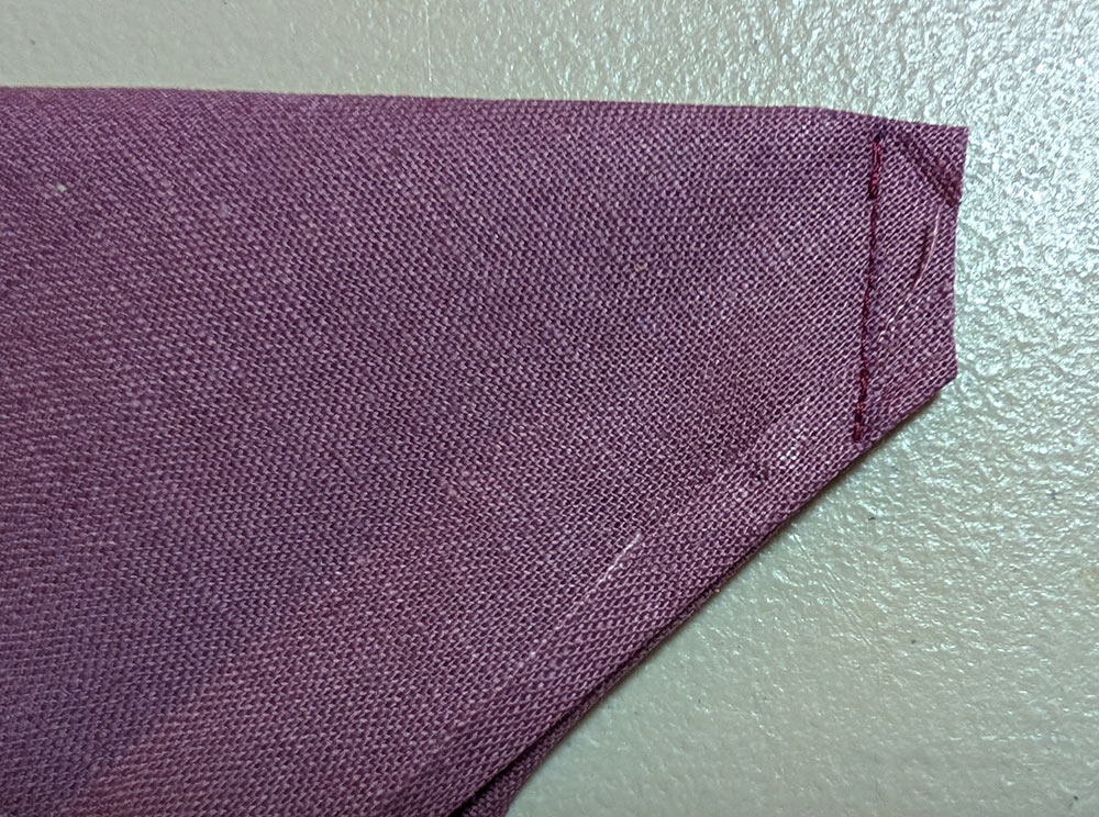- Finger press the seam open. Holding the seam flat with your fingertips, flip the corner right side out, and smooth to make the mitered corner.