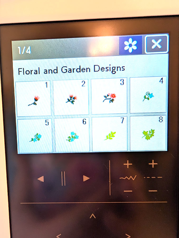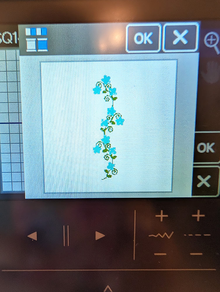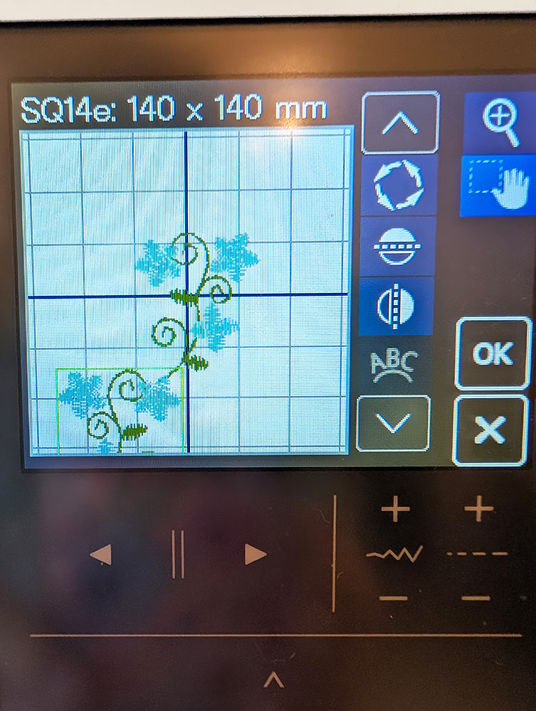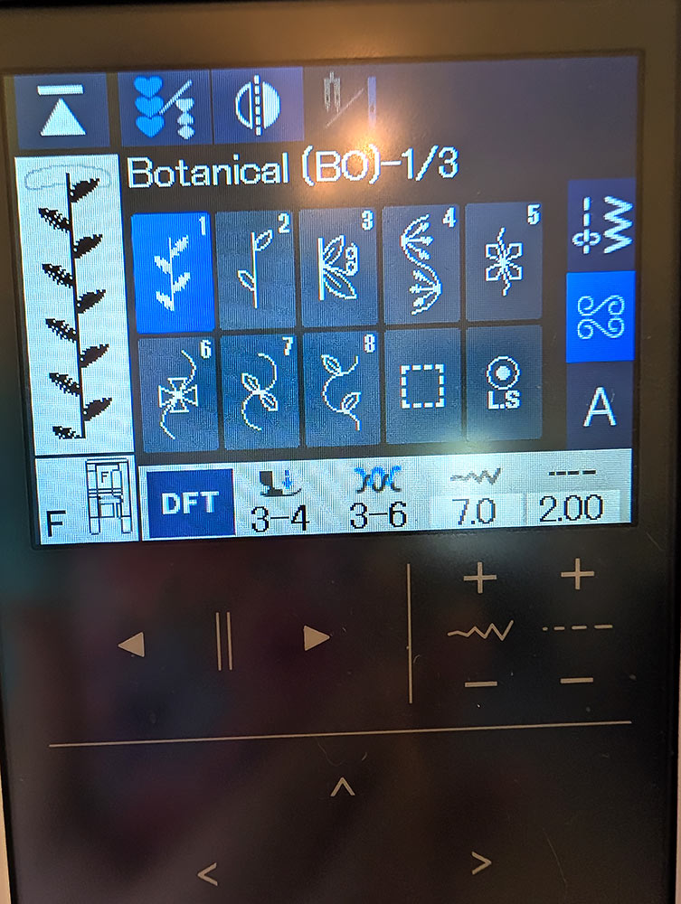 - Select the decorative stitch( Botanical Stitch #1 on the MC1000 on our sample).