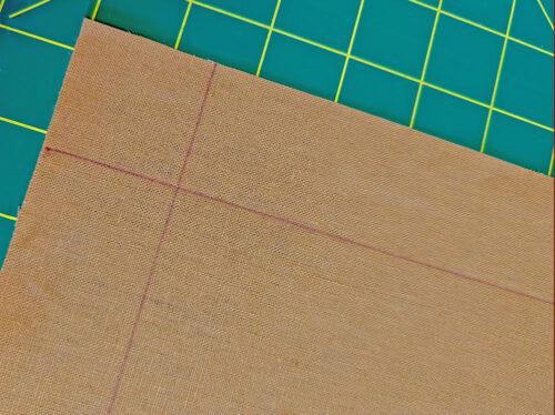 - Place the 22” square right side and flat on your work surface. With a fabric marking pen, draw a line 1½“ in from each side of the napkin. The lines should intersect at the corners.
