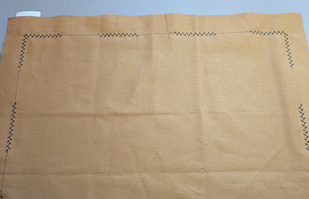 - Fold, mark, stitch, and flip each corner of the napkin in the same manner.