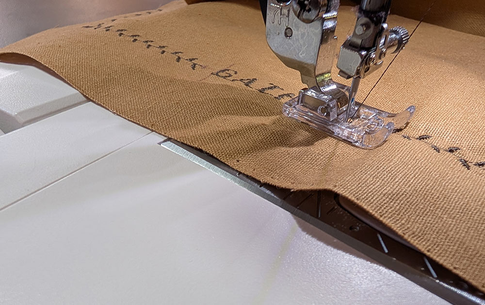 - Start the stitching ¼” from the end of the decorative stitches, following the marked line. Place a word in the empty space.