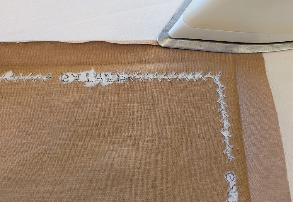 NOTE: For the best look when the napkin is folded and sitting on the table, you want the lettering to face the outer edge of the napkin. This means the lettering needs to be sewn with the edge of the napkin positioned to the left.