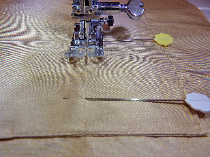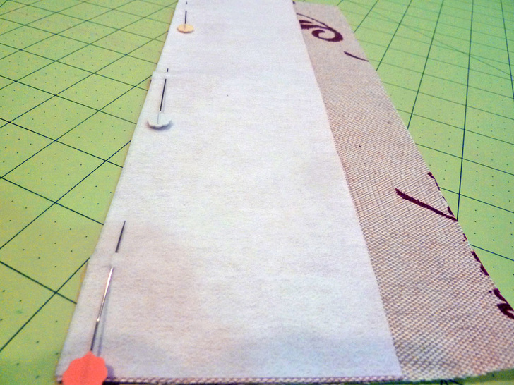 - Fold down the top raw edge of the lining ½” all around. Pin in place.