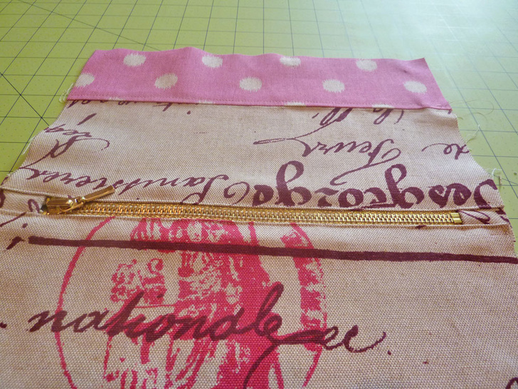 - Press the panels away from the zipper. You now have panels stitched in place on either side of the zipper and the excess width is neatly filled in with the zipper tabs. Trim the excess tab fabric so the side edges are flush.