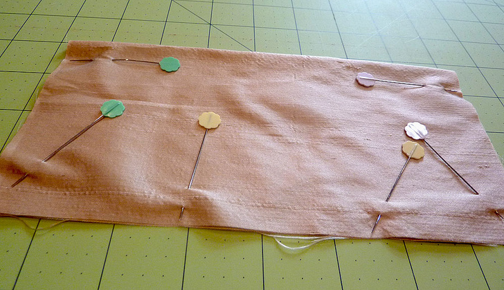 - If you have a directional fabric, make sure everything is facing the right direction. You are pinning along the bottom edge of the top to the top edge of the bottom. Pin first, then gently open up the piece to check that everything is correct.