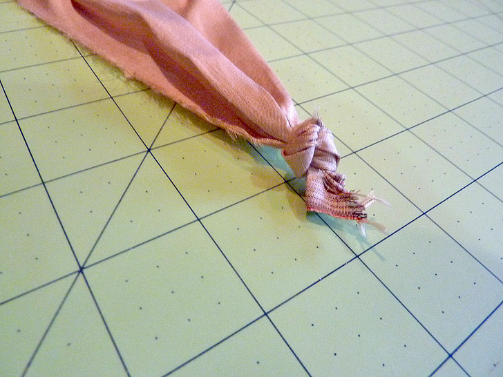 - With the knot in one hand, twist the strip with the other hand and gradually wrap the strip around the knot.