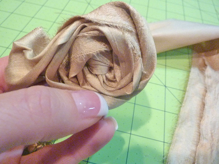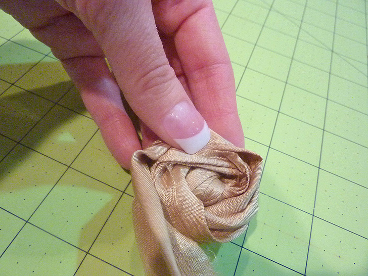 - The longer your strip, the more you will spiral around the knot, and the fuller your finished rose will be. It’s okay for the raw edges of the silk to show; it gives the finished rose a rustic, “tattered” look.