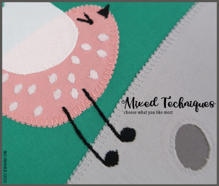 Thanks to our sponsorship from Janome America, all the templates are available as free downloads. We go through the technique options in our recommended order, but once you read through and understand how each effect is achieved, you’re welcome to choose the option(s) you like the most and that best fit your machine’s features and presser feet. For example, we give you specifics about all the adjustments we made to specific Janome built-in decorative stitches to get details like the Bird’s legs, the Elephant’s tusk, and the Gator’s eyes; but you are welcome to use your own stitch and appliqué options or even hand embroidery to achieve the same look.