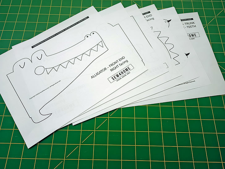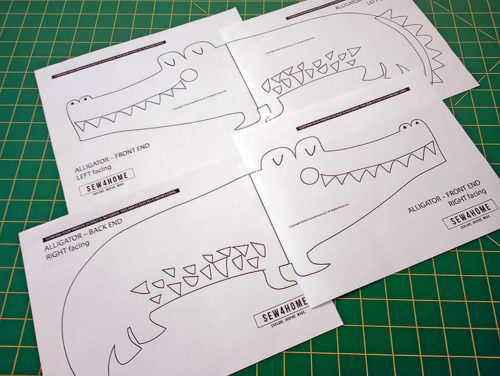 - For both the Elephant and the Alligator, you have Left and Right facing templates to assemble. This gives you both a template for tracing shapes directly onto the fabric (facing in the finished direction) and a template for tracing onto the fusible web, which has to be in the opposite direction so when the appliqué is applied, the animal is facing in the correct direction.