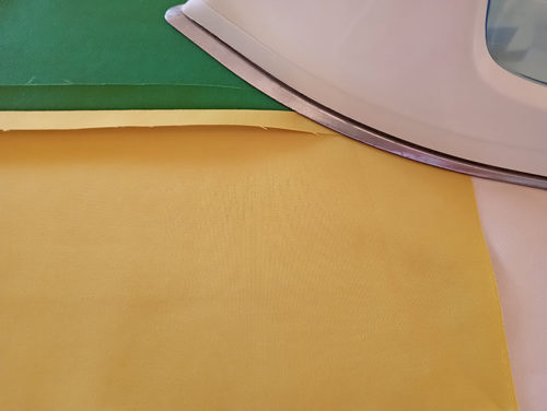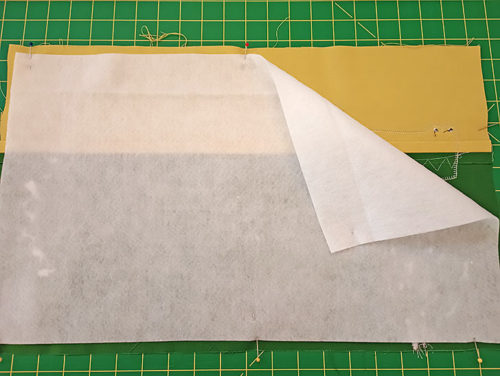 - Find the front panel and the matching panel of fusible fleece.