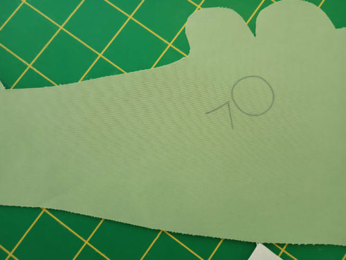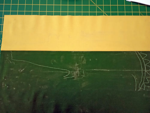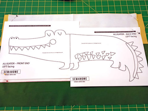 - Find the sewn front panel, which has the Alligator outline traced into position. Place the panel right side up and flat on your work surface.