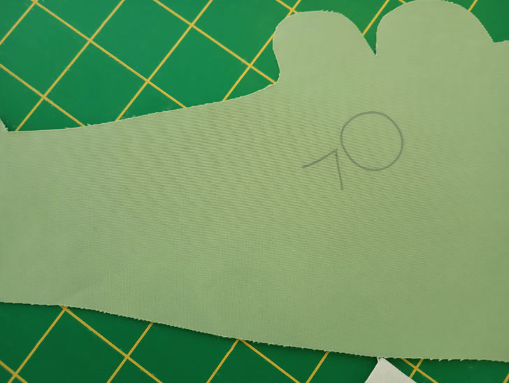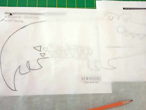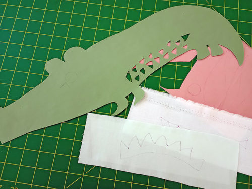- Using the original paper template as your guide, draw in the Alligator’s Eyes and Nostrils with a fabric pen or pencil.