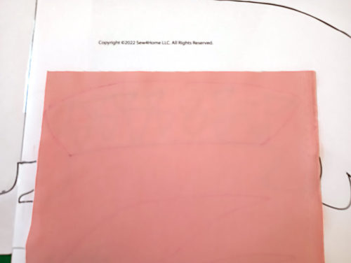 - Using a straight stitch, carefully follow the draw outline of the Tail Ridge. You are stitching through the Tail Ridge fabric and the front sewn panel.