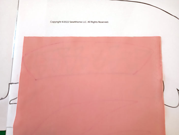 - Place fusible web over the top of the template – fusing side down, paper side up. Don’t be stingy with the fusible web. You want plenty to work with in order to completely cover the template. You can pin or tape both layers in place to help prevent any shifting while you trace.