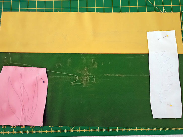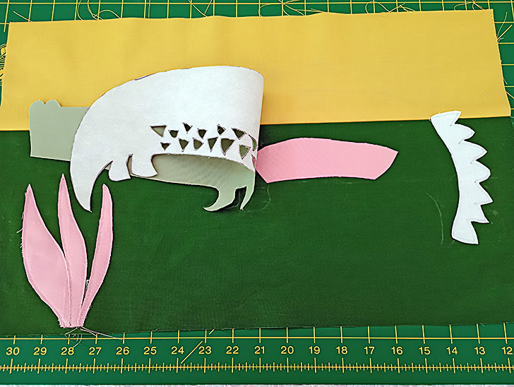 NOTE: You can trace all the Primrose elements on one large piece and then cut it apart after the fusible web has been applied. - For the Alligator’s teeth – a piece of White.