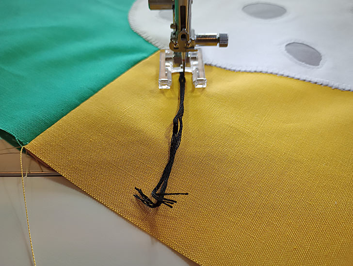 - Re-thread with black thread in the top and bobbin.