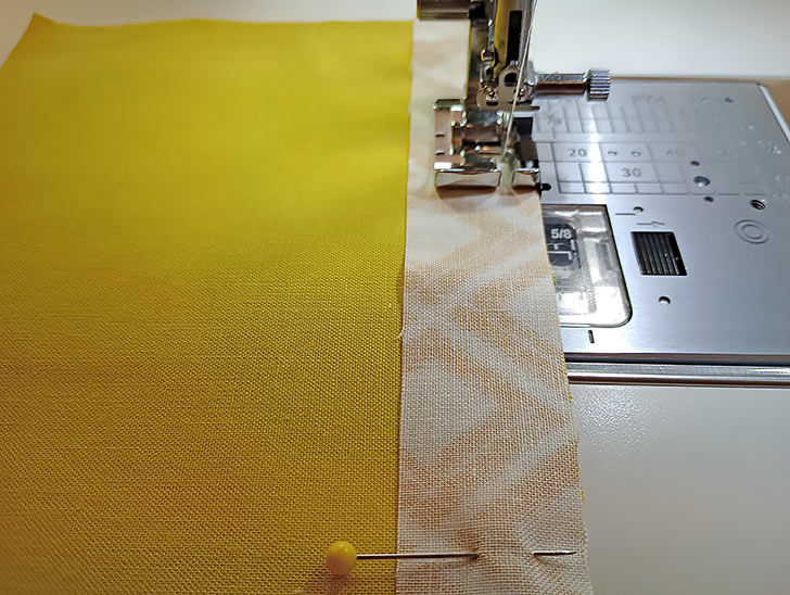 - Stitch the two lengths together with a ¼” seam. Press this tiny seam open and flat.