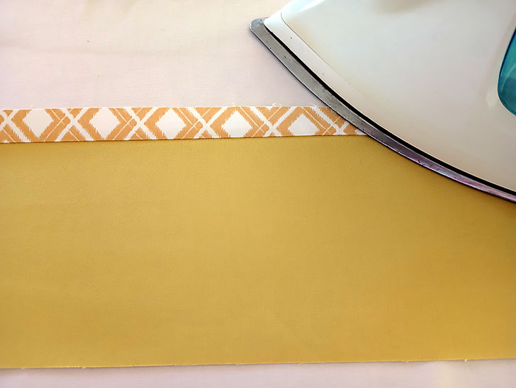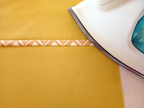- Bring the panels wrong sides together so their side and bottom raw edges are flush and the binding strip folds in half. Press again so your finished overlap panel is super smooth and flat.