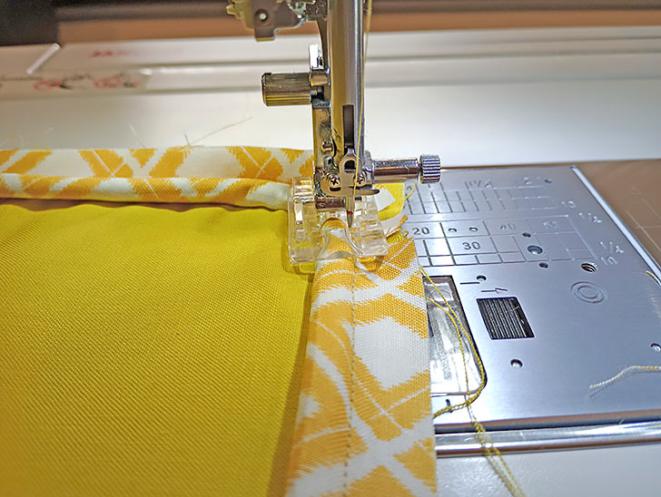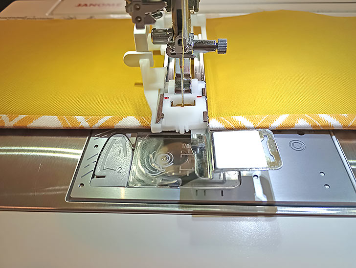 - Re-set for a standard straight stitch. Attach a Quarter Inch Seam foot if possible.