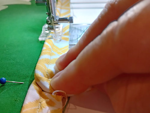 - You can certainly pin the fabric in place around the cord, but it is almost easier to simply hold it in place as you stitch.