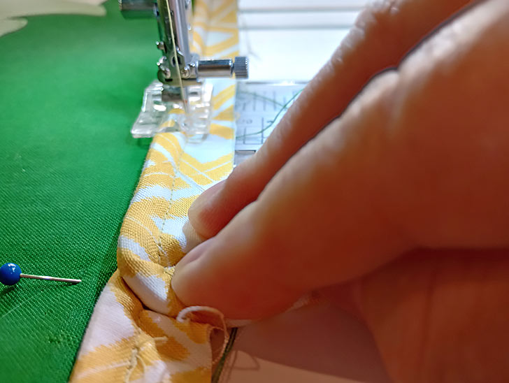 - This allows it to more easily curve around the corner. Be careful to not cut too deep; keep the snip below the basting.