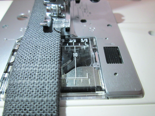 - Your machine should still be threaded with thread to match the strap fabric in the top and bobbin.