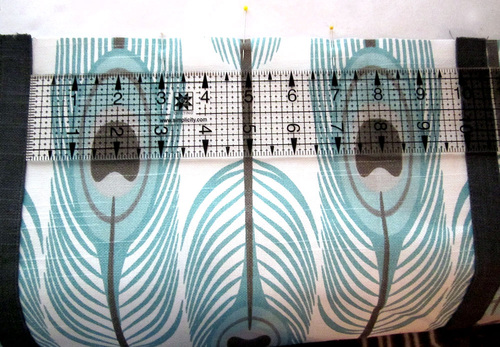 - With the accent strips in place, again find the center point along the top edge of each panel. Measure 2″ to the right of center and mark with a pin. Measure 2″ to the left of center and mark with a pin.