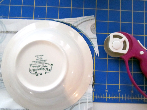NOTE: If you are new to this technique, we have a Box Pleating Tutorial. - Find a common household object to use as a template to round the bottom corners of the bag panels. We used a 6″ cereal bowl.