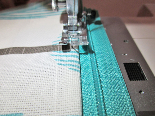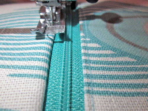 - Press the fabric up and away from the zipper. Edgestitch along the zipper through all the layers.