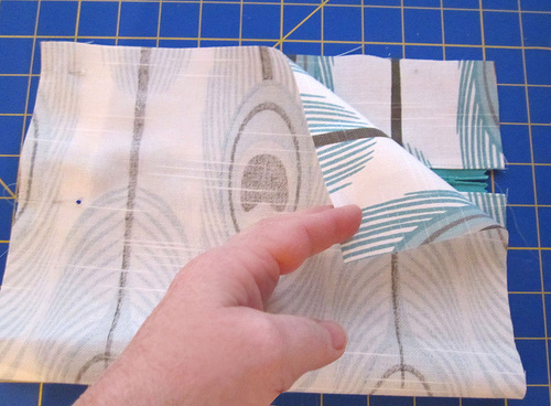- Turn the pocket right sides out and press. Using a ¼” seam allowance, topstitch along each side. This will enclose the unfinished edges of the pocket so there are no exposed edges inside the pocket. A bit like a French seam, but in reverse.