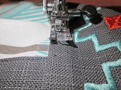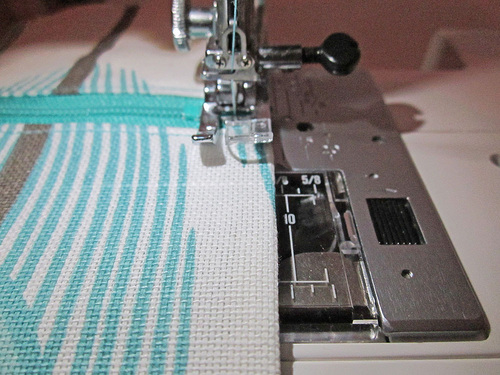 - Make sure the machine is threaded with thread to match the exterior fabric in the top and bobbin.