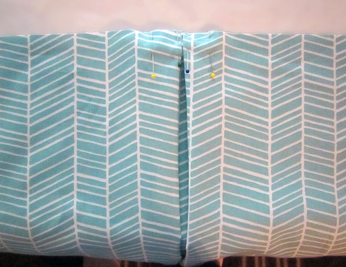 - Find the exact center along the top 20″ raw edge of each panel. Place a pin at this point.