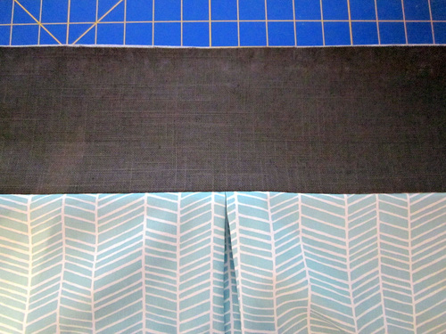 - Find the two 20″ x 15″ lining panels. Following the same steps as above, pleat the top edge of both panels.