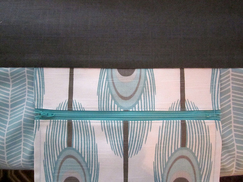 - Repeat to stitch the top edge of the large bottom section to the bottom edge of the zipper tape.