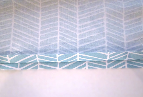 - Using a ½” seam allowance, stitch across. Press the seam allowance up towards the accent band.