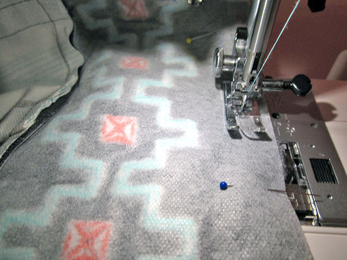 - Using a ½” seam allowance, stitch along both sides and around the bottom.