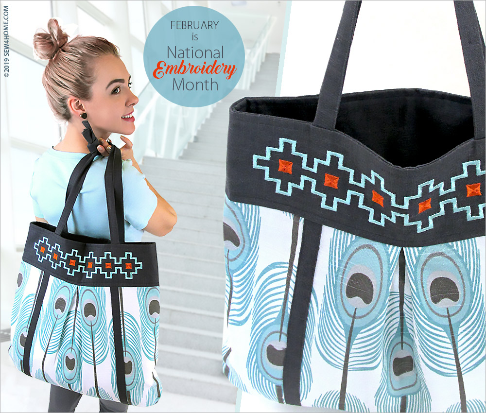 February is National Embroidery Month, and this big, beautiful tote features one of our favorite embroidery accents. The bag’s design is generous in both size and style thanks to the perfect combination of a bold fabric motif and that striking embroidery. The teardrop shape, narrower at the top and wider at the bottom, carries a lot and is fast and easy to load with just one hand.
