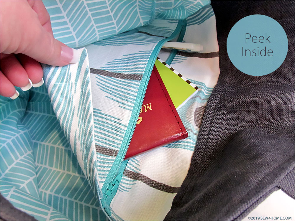 - Turn the bag right side out through the bottom opening in the lining.