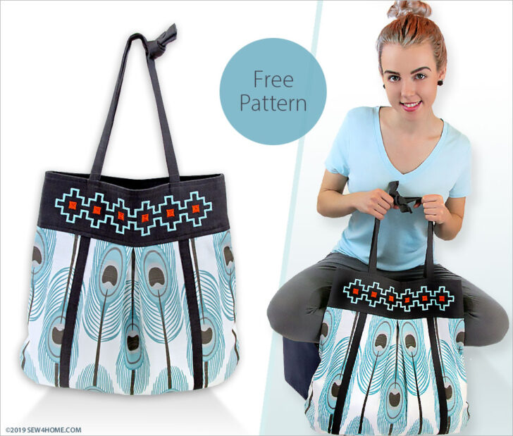 We originally used a cotton duck from Premier Prints with a slub texture; this means it has intentional striations that give it an interesting knobby look. Our cool turquoise and slate color combination is great for any season and a perfect backdrop for the bright pops of color in the mosaic border design embroidered across the top of the tote (front and back). We offer both a free embroidery design download as well as a printable template should you prefer to do hand embroidery or decorative stitching.