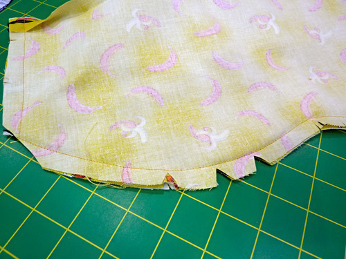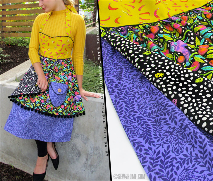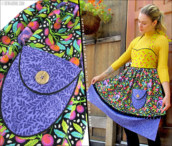 The main skirt panel is a single layer of fabric with a narrow hem all around, but the overskirt is a double layer, giving you a secret back fabric to flip up and flash as you go about your banana bread baking.