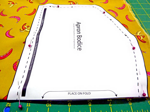 Using the pattern, cut ONE bodice piece on the fold - From the mid-weight fusible interfacing, use pattern to cut ONE pocket.