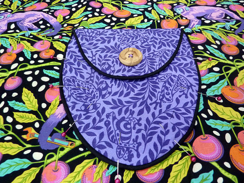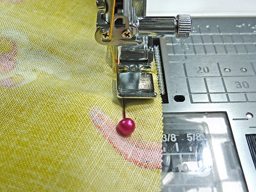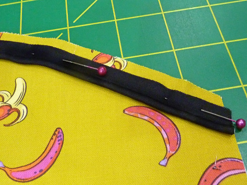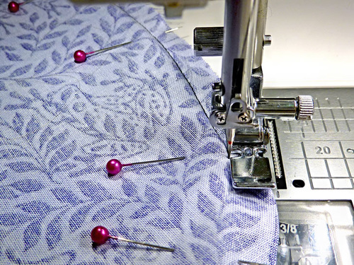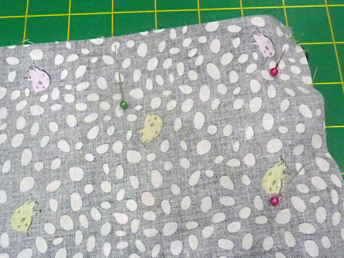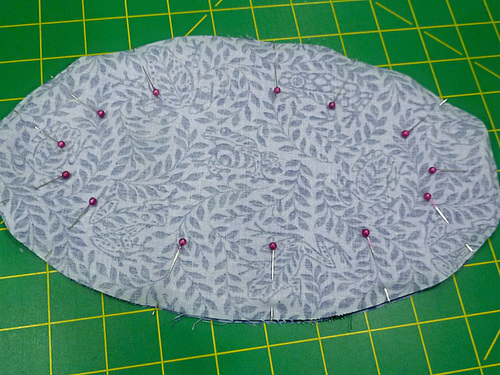 - Pin the pocket in place along the sides and around the bottom.