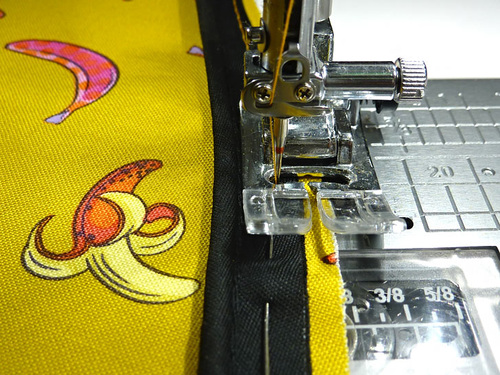 - Machine baste the piping in place along the top and bottom, using a standard foot or a Zipper foot.