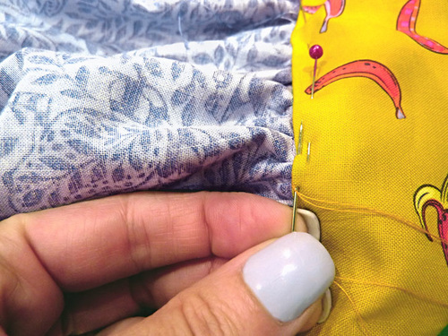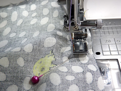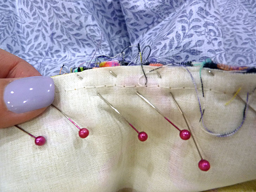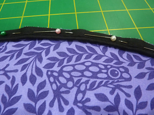 - Pin in place along the two sides and across the top curved edge. The bottom remains open.