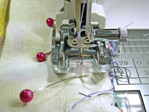 - If necessary, re-thread the machine with thread to best match the fabric in the top and bobbin. Re-set the stitch length to normal. We continued to use our Zipper foot although you could also revert to a standard presser foot.