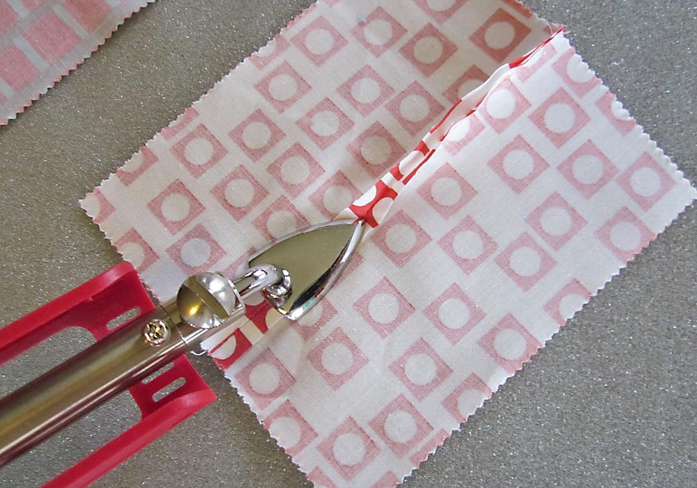 I can see lots of opportunities for working with bias binding and piping. The tip is just the right size to press the Extra Wide Bias Binding from Wrights that we use on many of our projects.