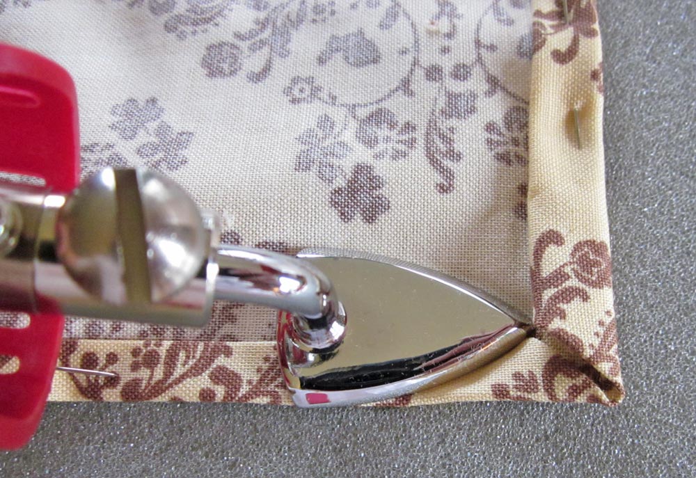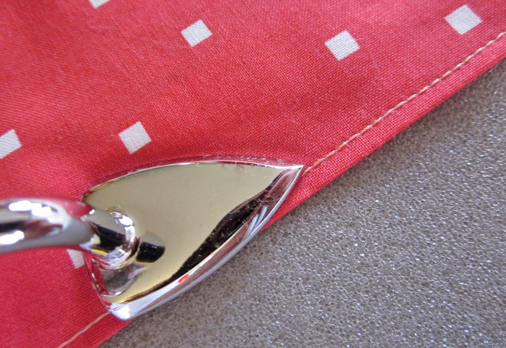 And, one of my favorite uses: the narrow hem with a clean finished corner. A double-turn ¼” hem is always a finger-burner because you need enough heat to set the hem and hold all those tiny folds in the corner, but you have to get in really close… ouchy! It was much easier to do with the Mini Iron.