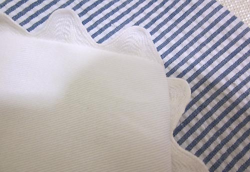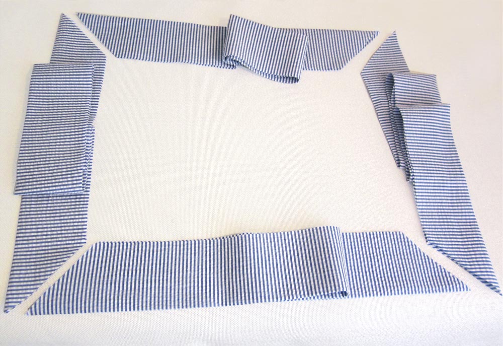 - Find TWO of the 5″x 31″ seersucker strips and TWO 5″ x 25″ seersucker strips.