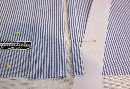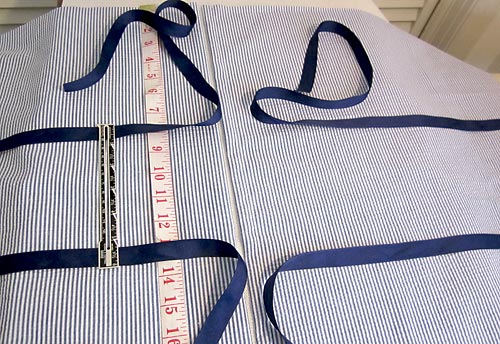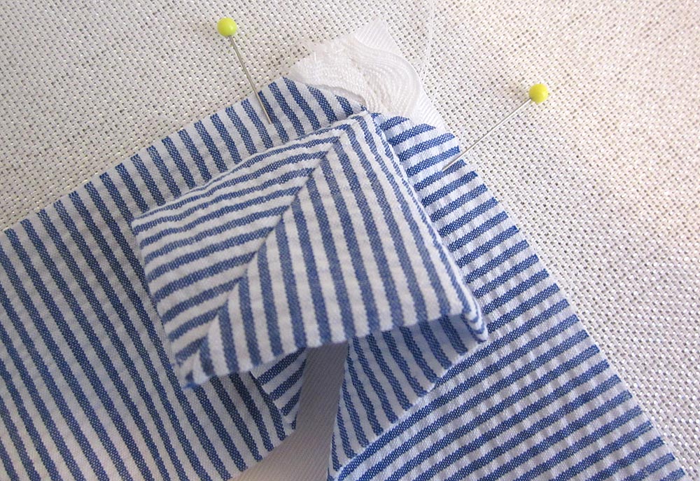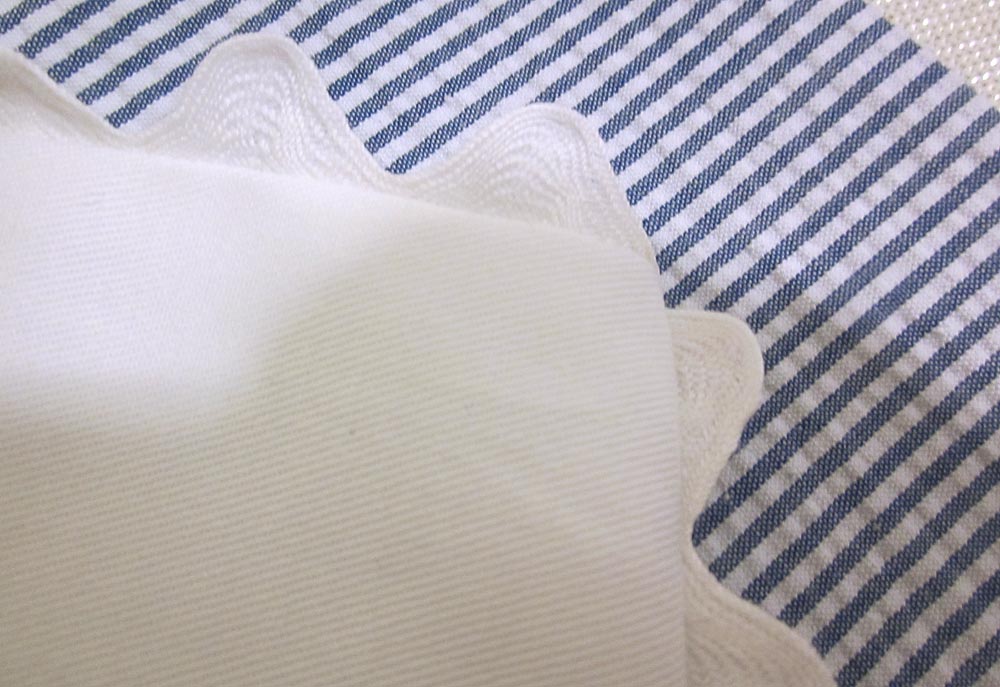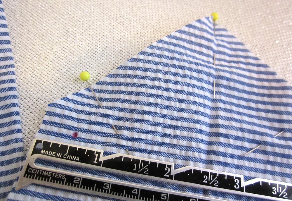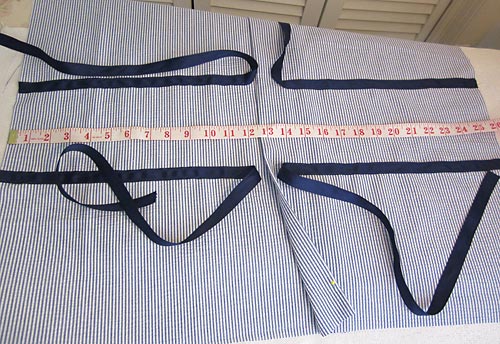 The seersucker should be cut so the lines are all running on the vertical. The yardage above was figured with this in mind. Keep this in mind as you make your cuts; all the “height” measurements should be on the vertical.