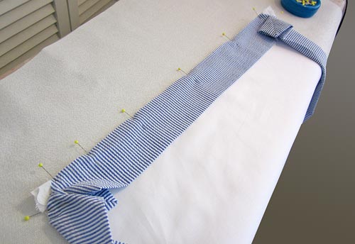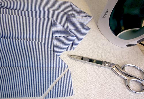 NOTE: When ironing seersucker, you want to press down, but don’t rub the iron back and forth too much. You don’t want to iron out the puckers – just the wrinkles and fold lines.